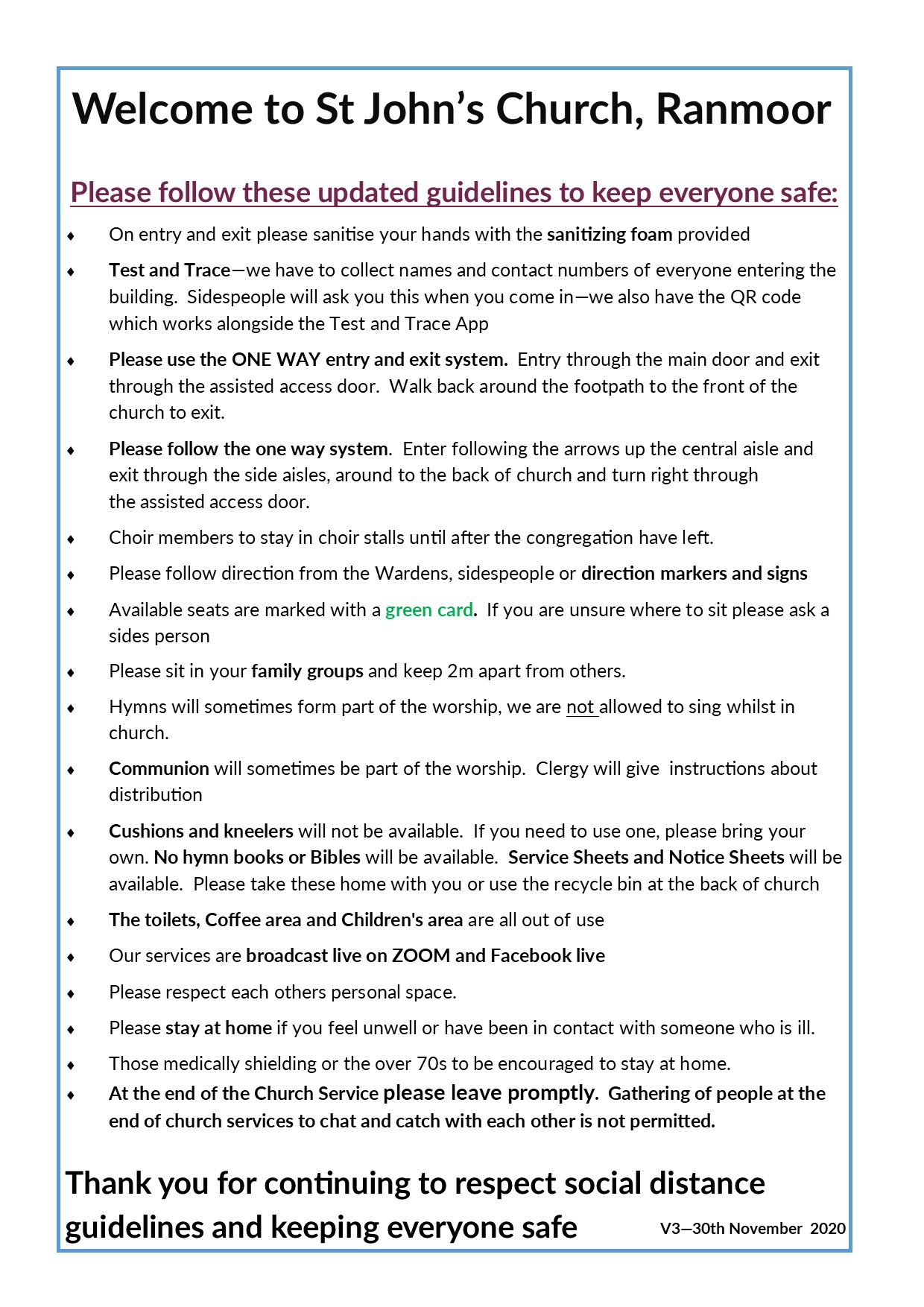 30th November - Guidelines for entry and exit of church services effective from Sunday 6th December 2020: