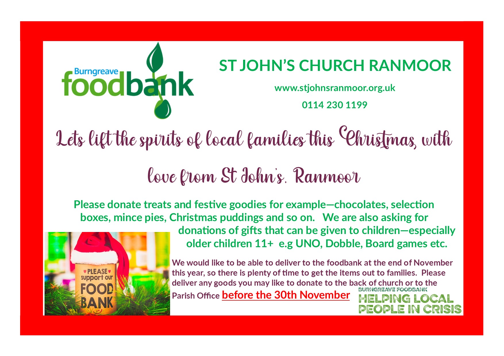 We will be following government guidance and Church of England advise. Check back later this week to understand how the latest Covid lockdown will affect our services here at St John's. If you need to speak to us contact the office 0114 230 1199 or office@stjohnsranmoor.org.uk.